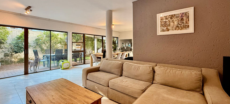 Outside, a private wrap-around garden embraces the home – a peaceful space for morning coffee, weekend braais, or simply unwinding at the end of the day.